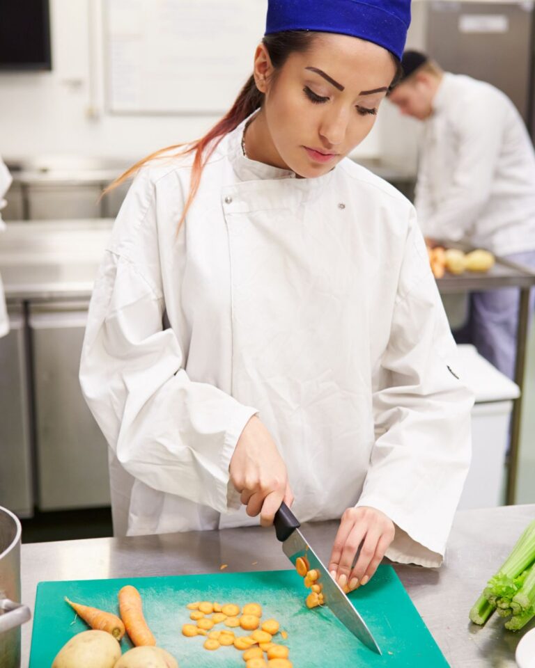 bezpieczna i szybka praca nożem (krojenia, siekania, julienne/brunoise),